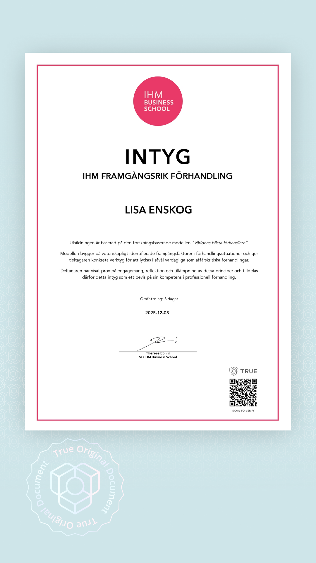 Stort grattis, du kan nu titulera dig som en IHM alumn. Du är nu en del av ett av Sveriges starkaste affärsnätverk - tillsammans med över 60 000 personer ute i näringslivet. Ett sätt att enkelt knyta kontakt med IHM:s nätverk, men även att visa upp din kompetens är att lägga till IHM Business School och din utbildning på ditt CV och din LinkedIn-profil.